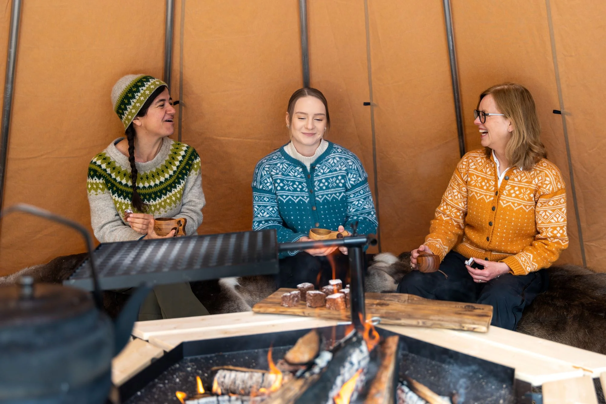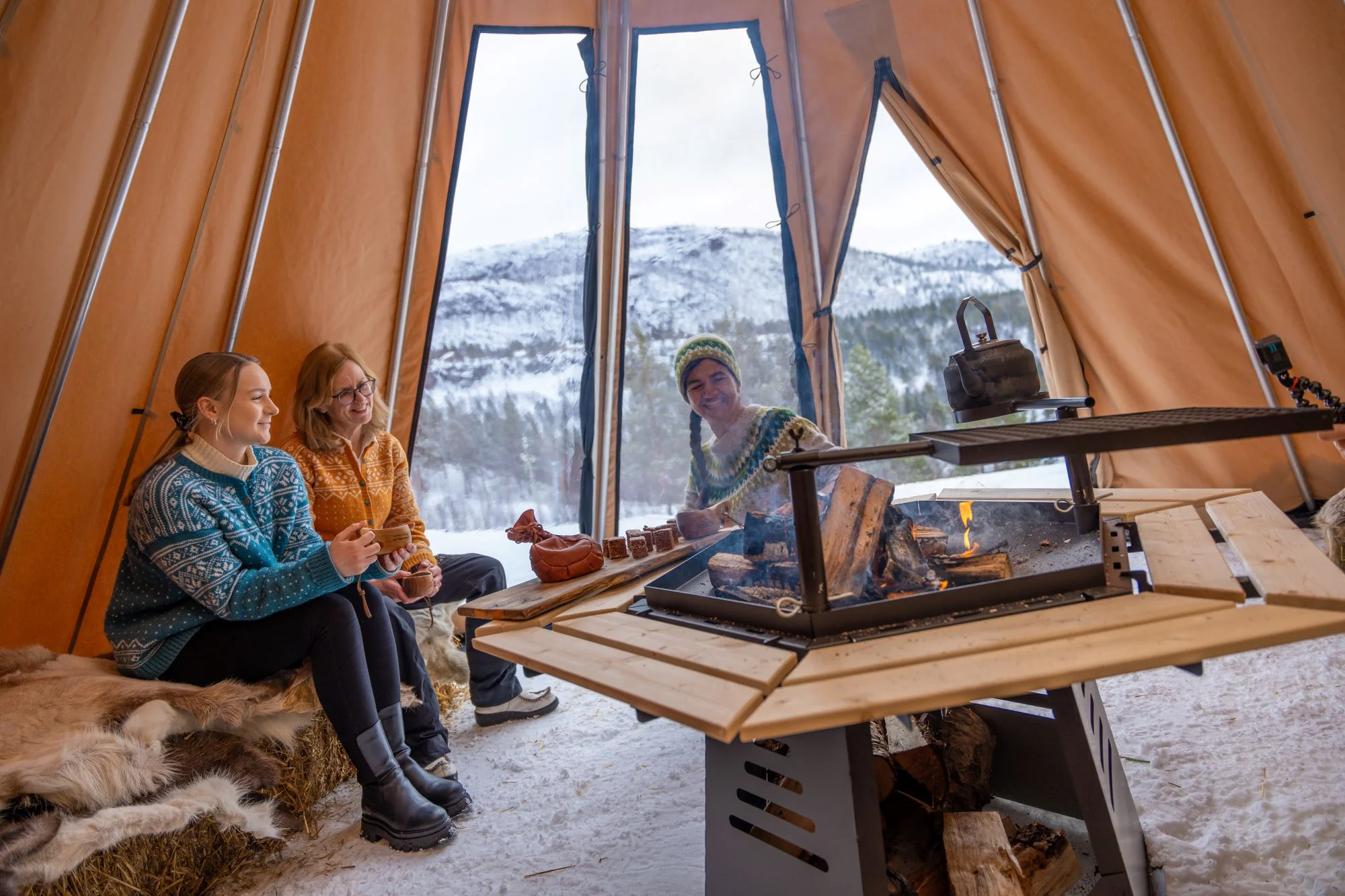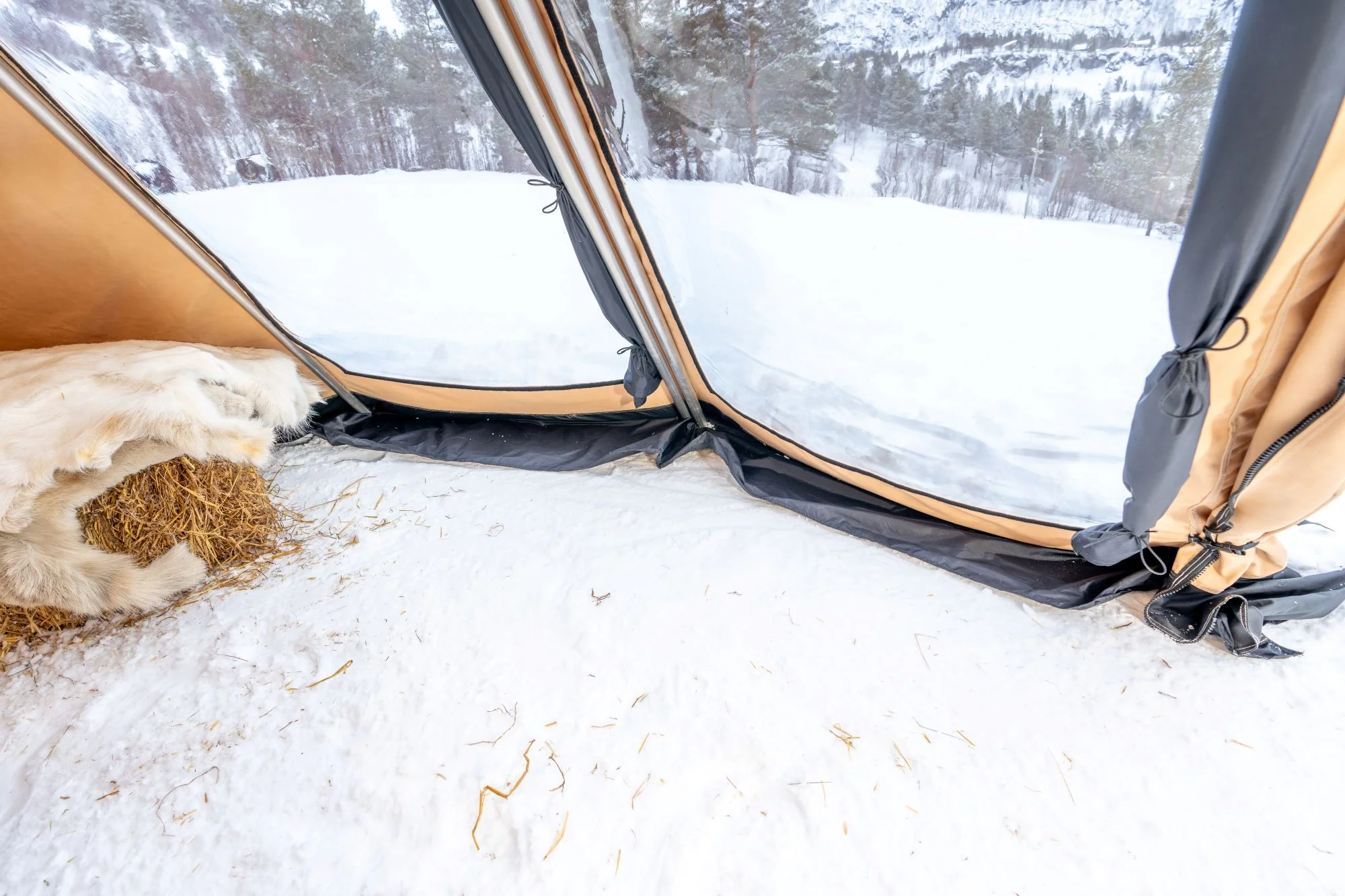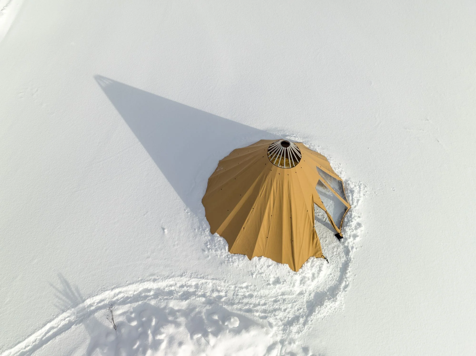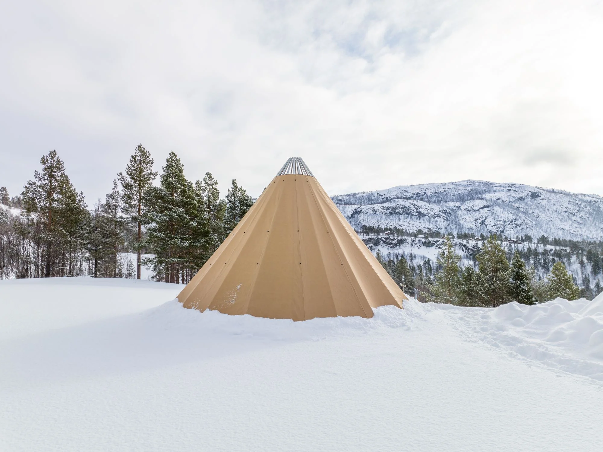 - Avtagbar ovnshatt med pipegjennomgang. Dersom du ønsker fyring med bål, må lavvoen brukes uten ovnshatt slik at røyken kan slippe ut.