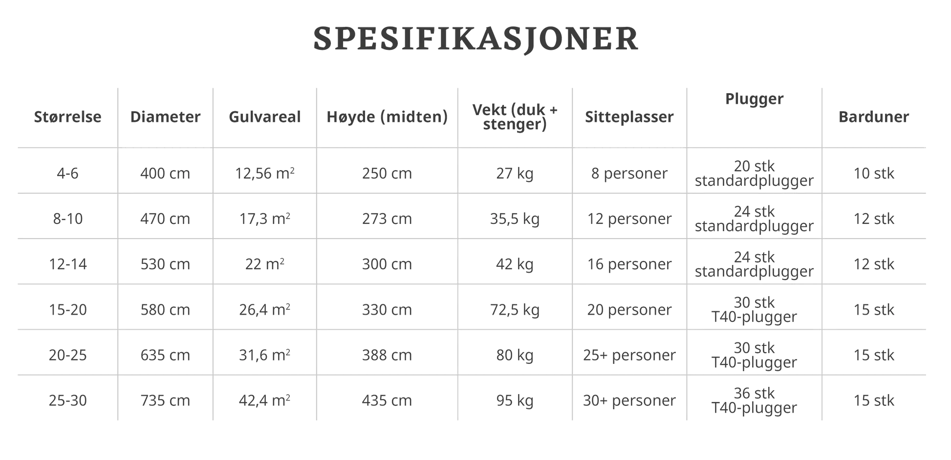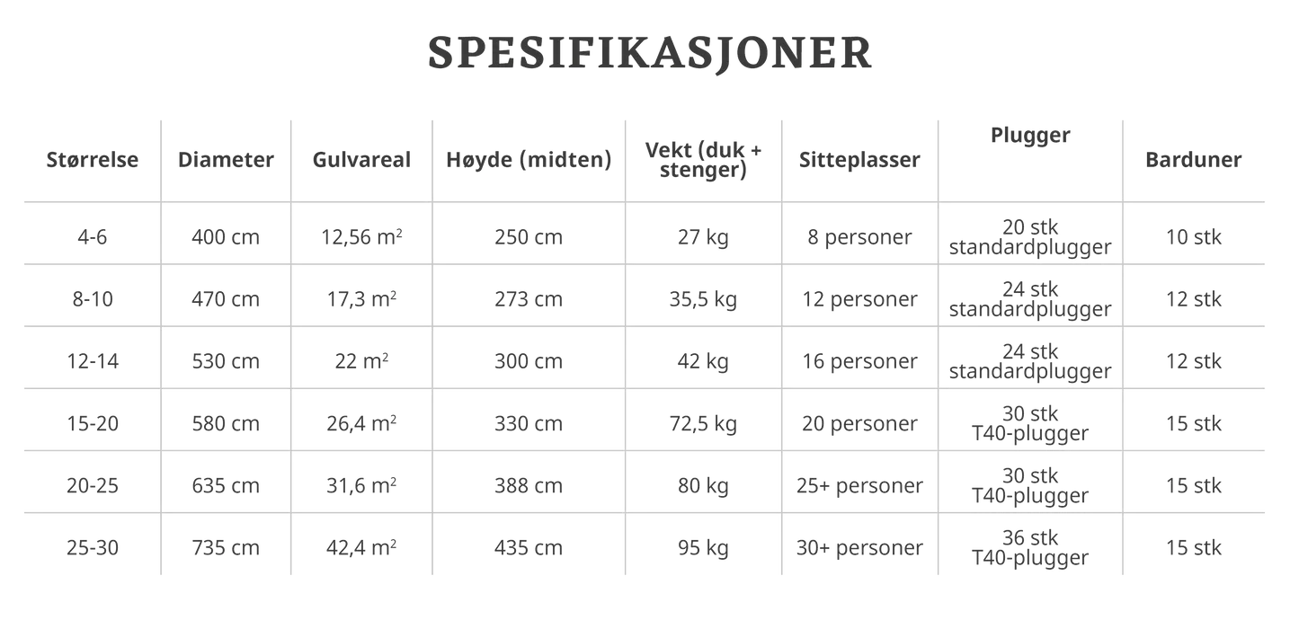 Spesifikasjoner Venor Lavvo allround: