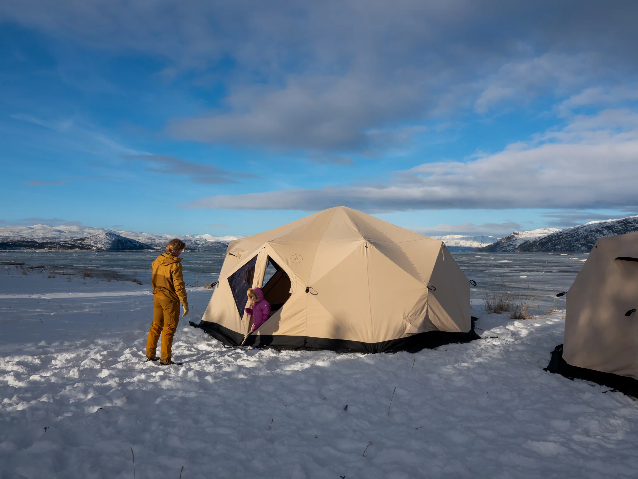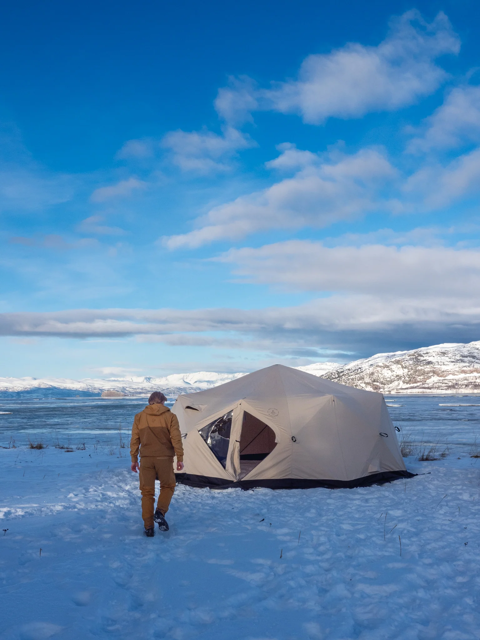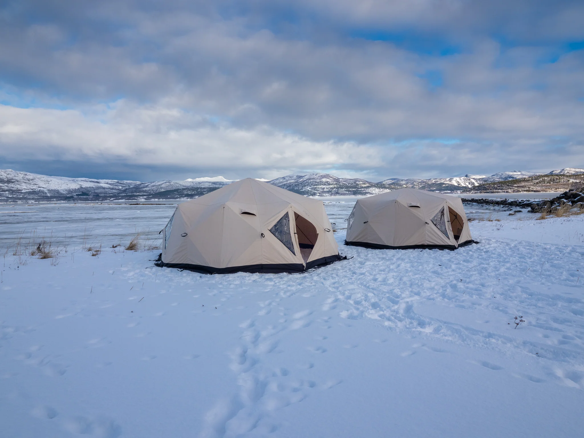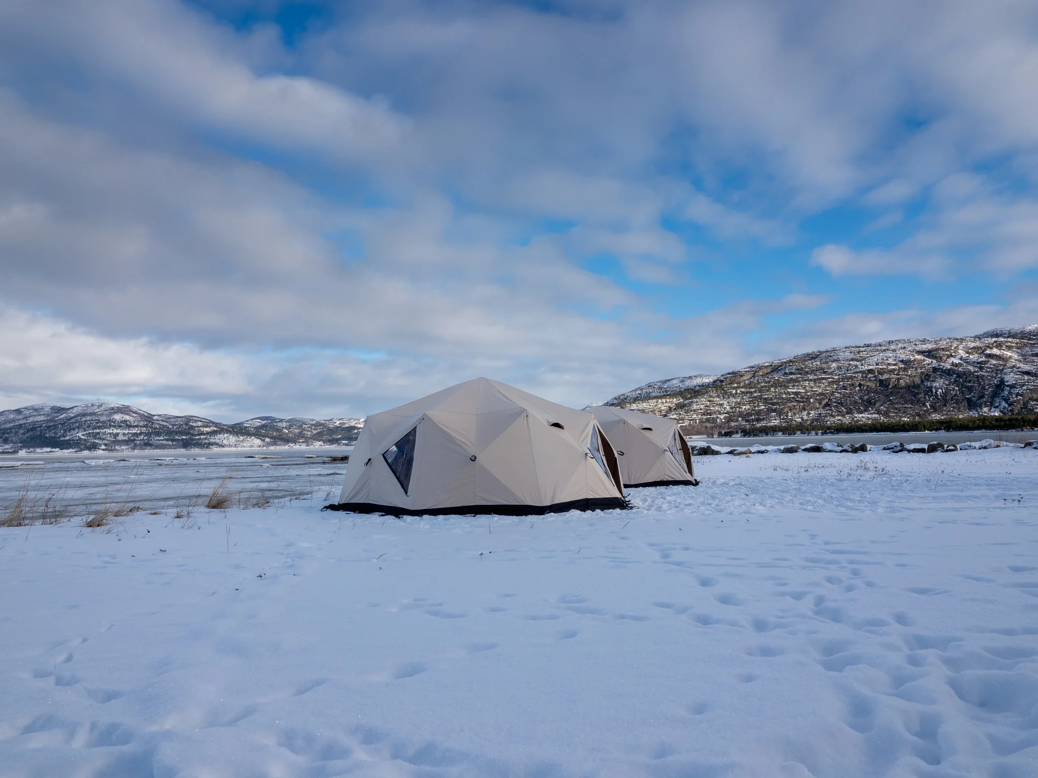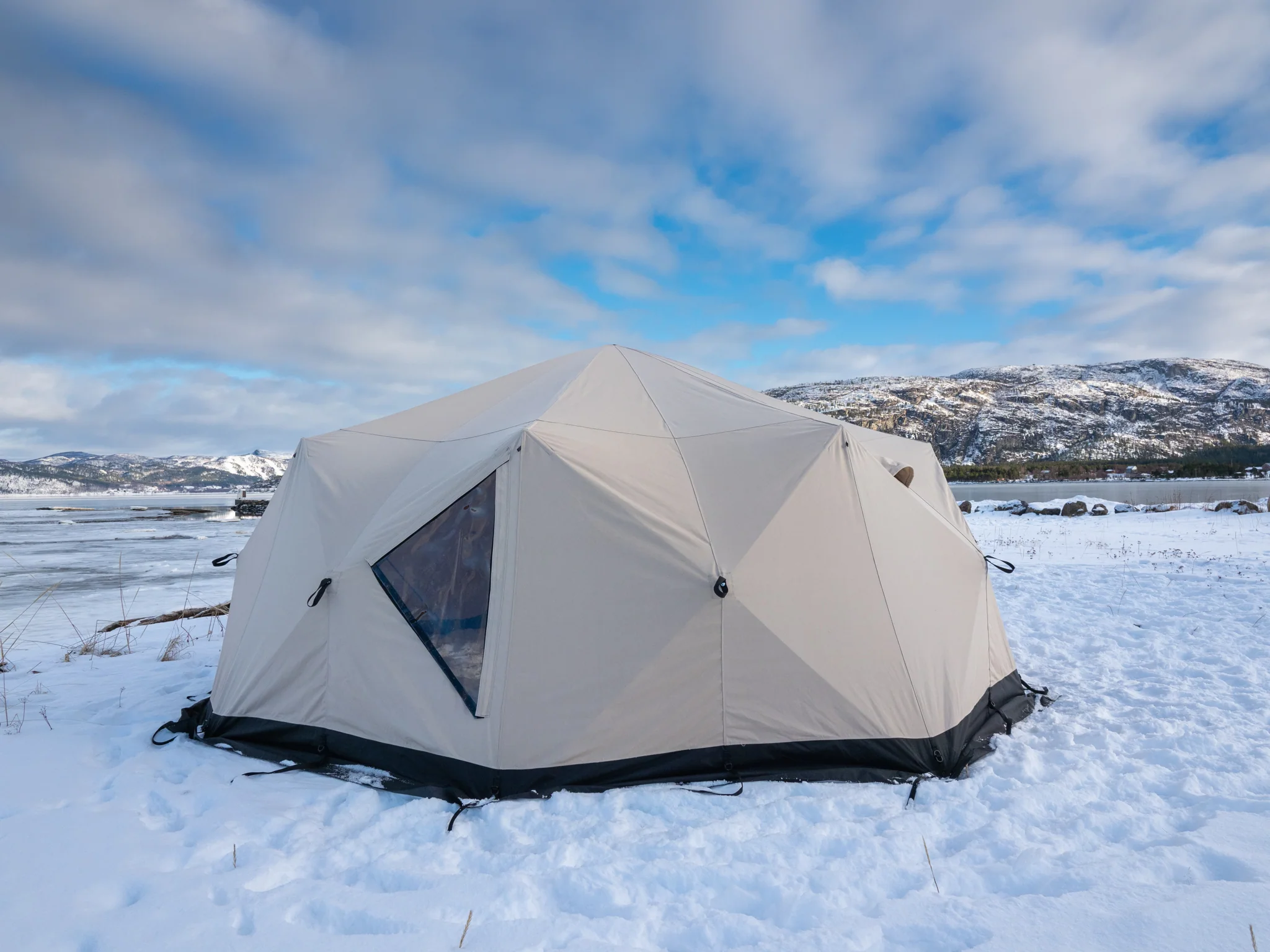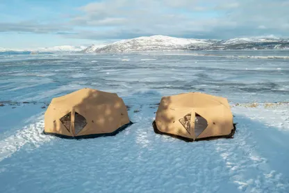 Venor PopUp står stabilt i sterk vind og under krevende værforhold. Teltet anbefales til basecamp-telt.