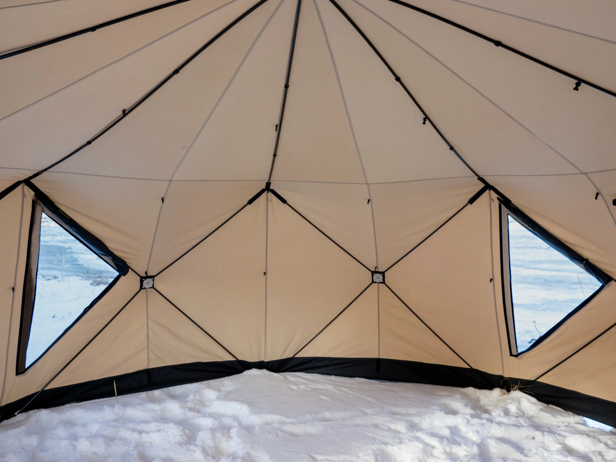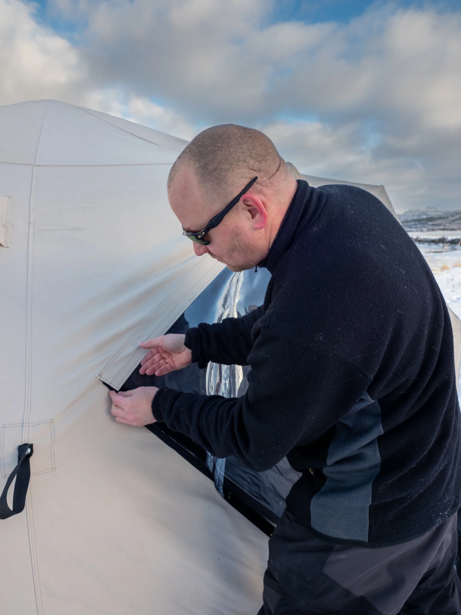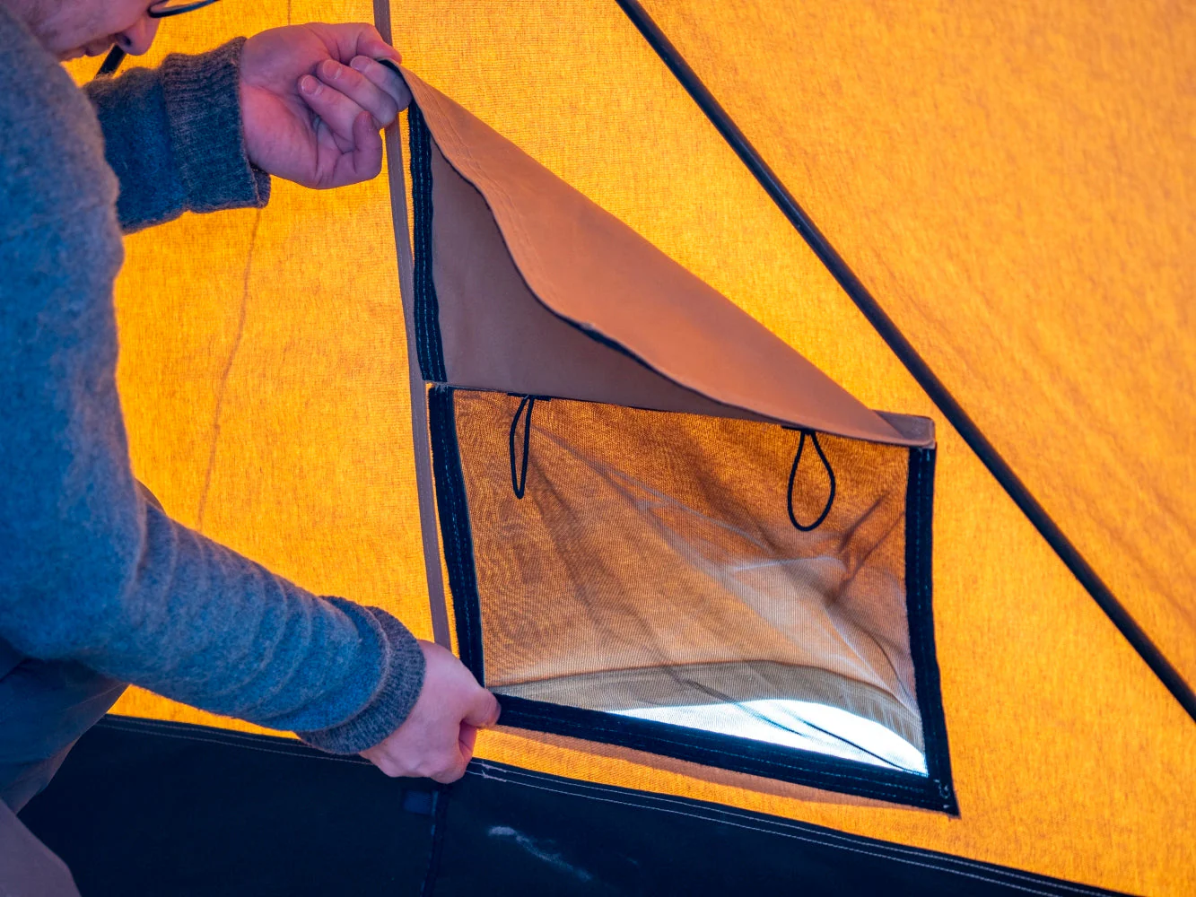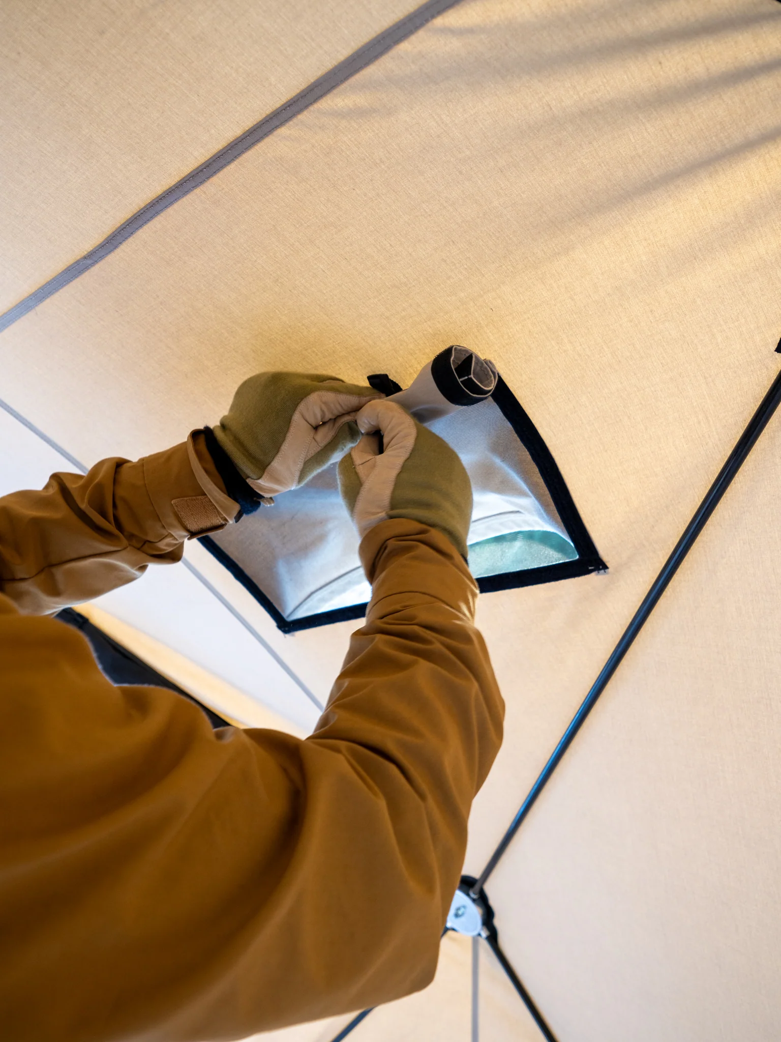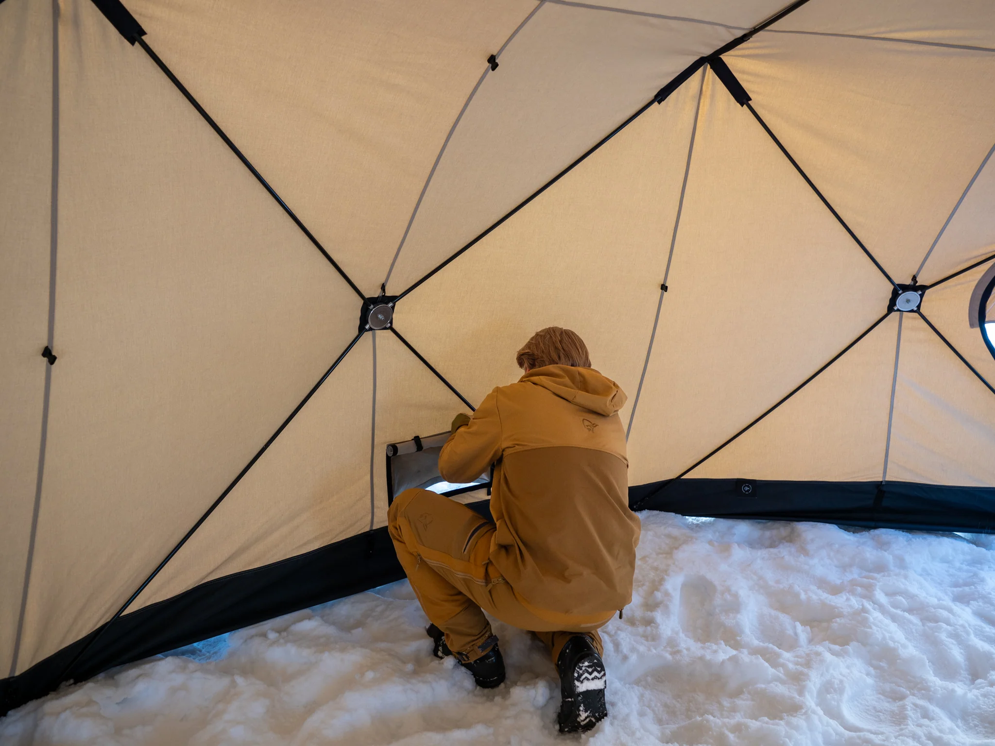 - Vi anbefaler å ta av vinduene før teltet pakkes ned og før oppbevaring, for å bevare levetiden på vindusplasten