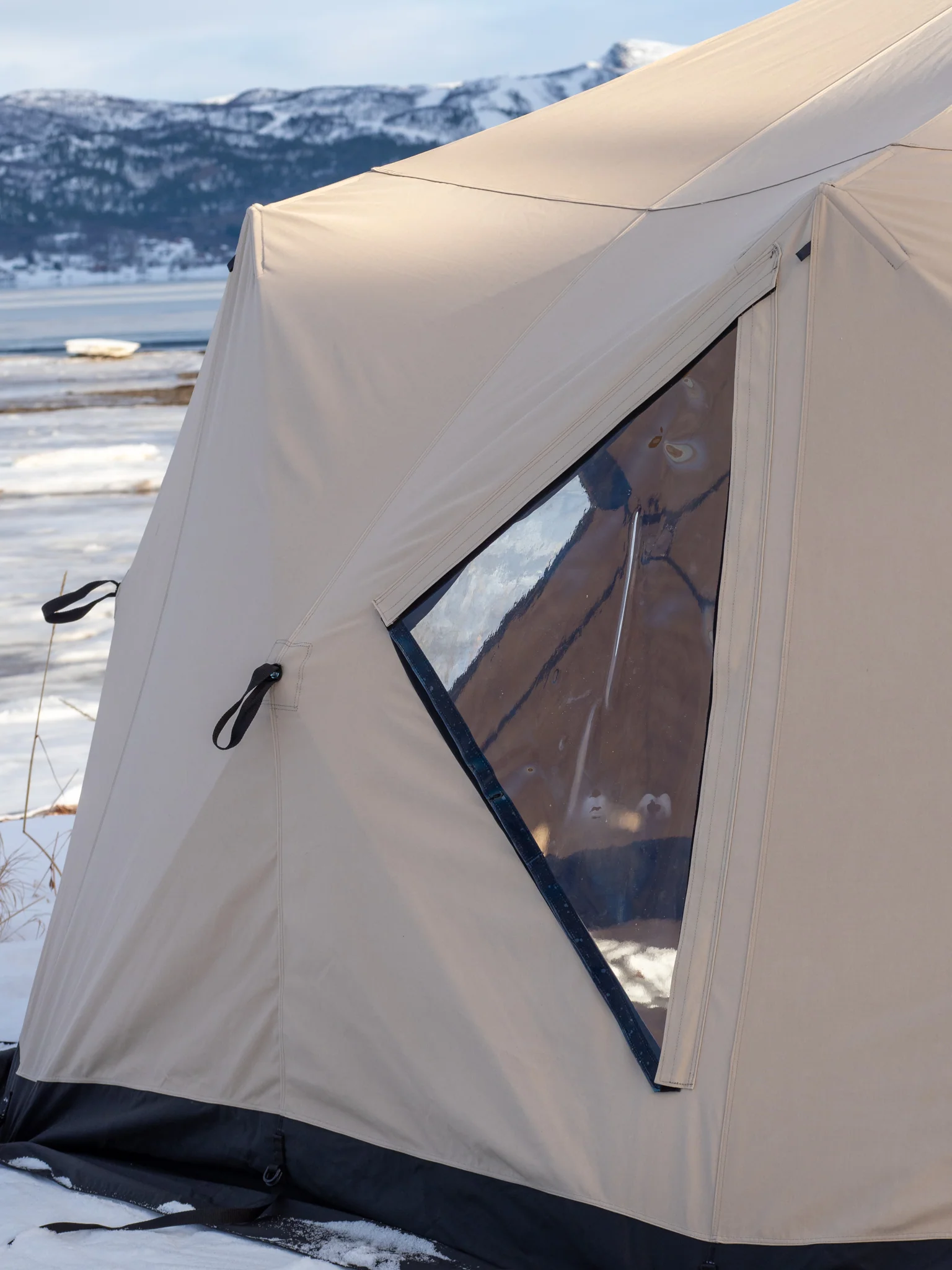 Stoff lys beige. Impregnert og r?tebehandlet. Samme duk som brukes i v?re telt.