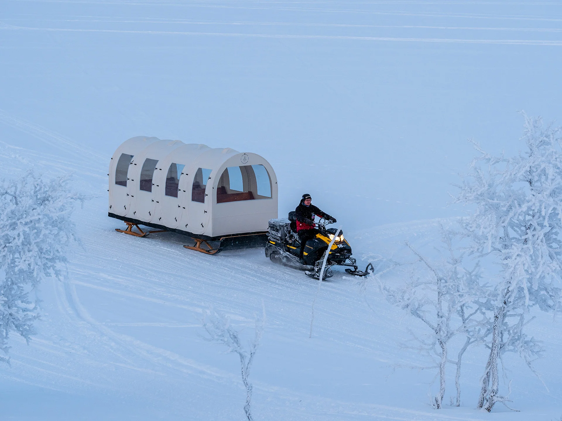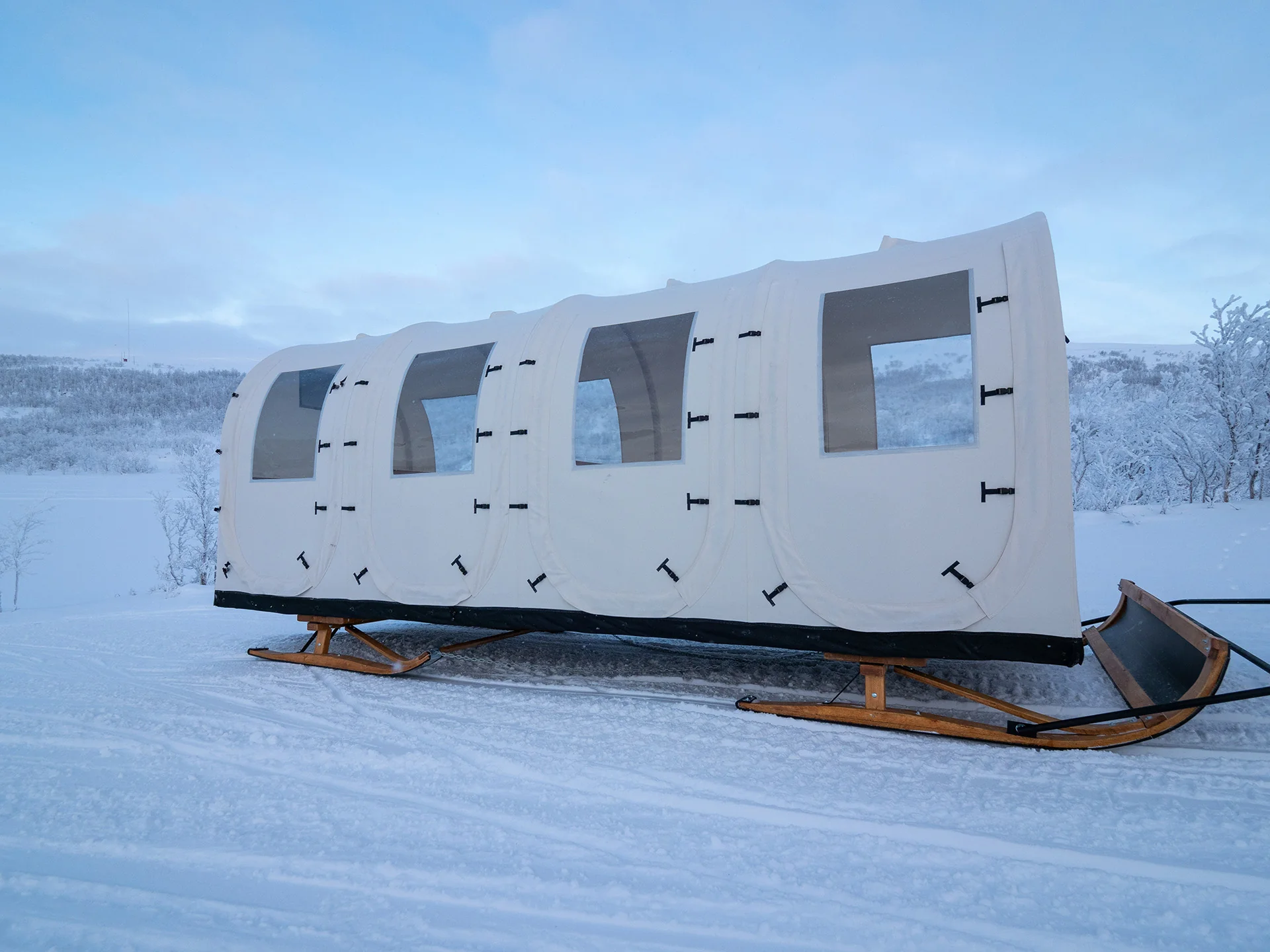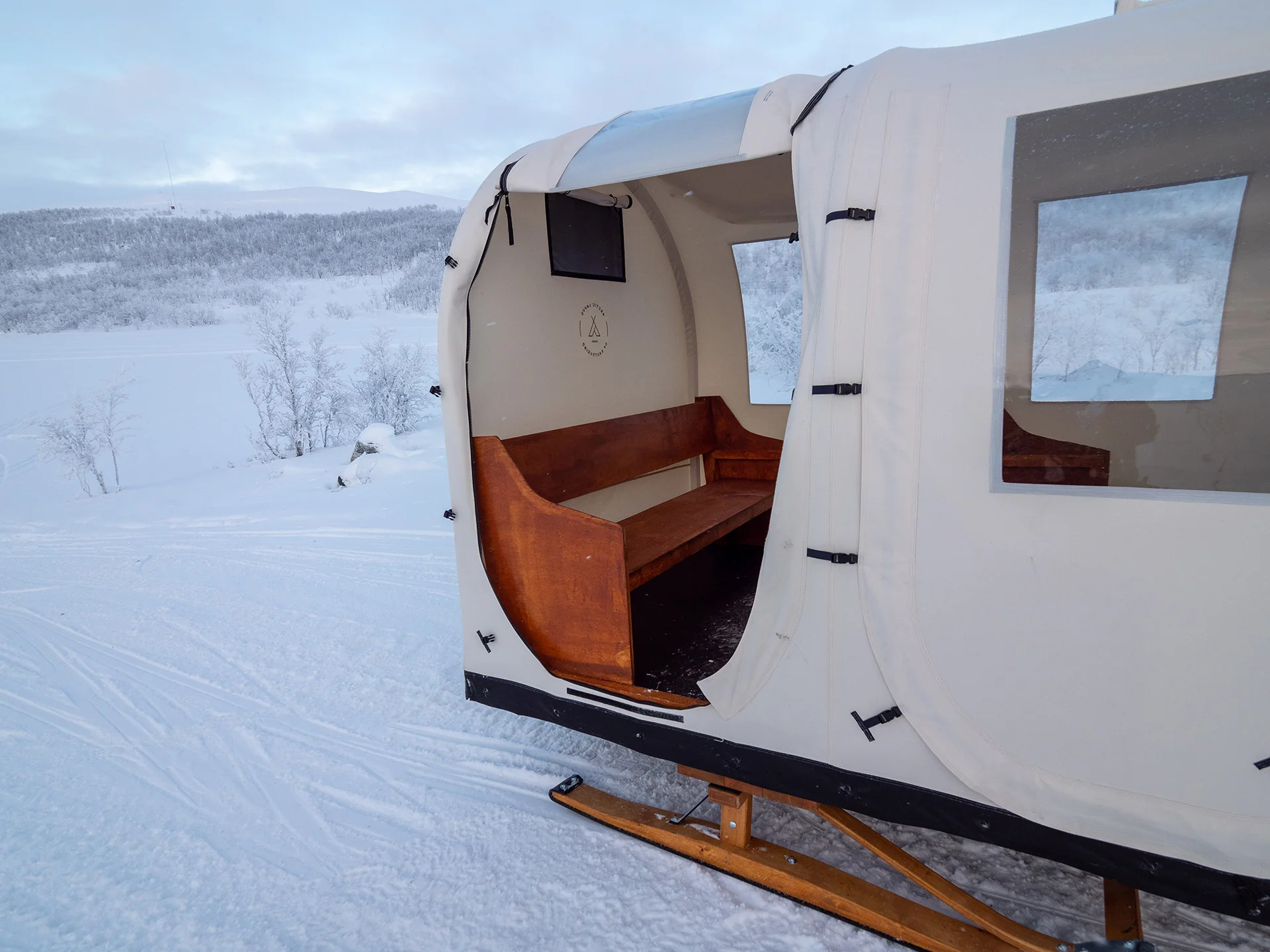 Diligense – transporter er en teltslede for persontransport. Teltsleden er romslig med god plass til 12 gjester. La dine gjester sitte komfortabelt i le for v?r og vind, mens du transporterer dem trygt og sikkert. Med mange vinduer og god utsikt anbefales Diligense - transporter til guiding og persontransport inn til aktiviteter, camp, fjellstuer med mer. Teltsleden er 180cm bred, 500cm lang og har en egenvekt p? ca. 450kg.?
