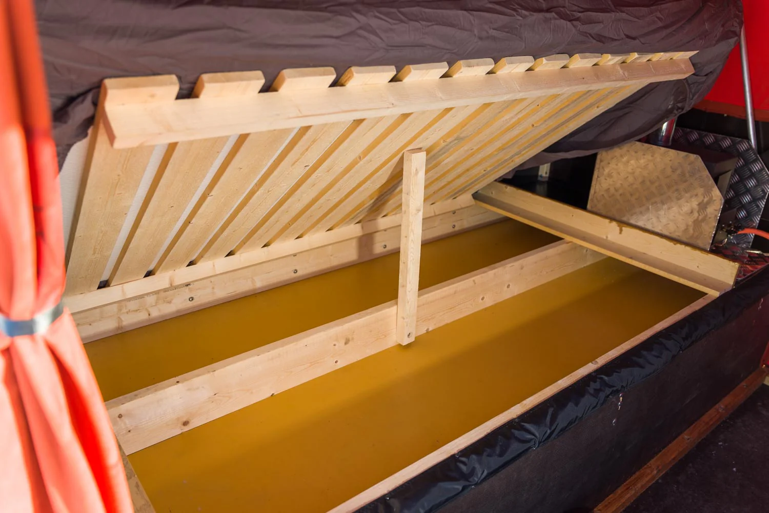 PopUp Sled er optimal for 1-2 personer, men det er ogs? plass til en ekstra madrass p? gulvet om det skulle v?re behov. PopUp Sled har stor plass til oppbevaring av ved, bensinkanner og gassflasker. Hvis du ?nsker ? transportere st?rre ting med deg er det i tillegg festepunkt for stropper p? lokket.