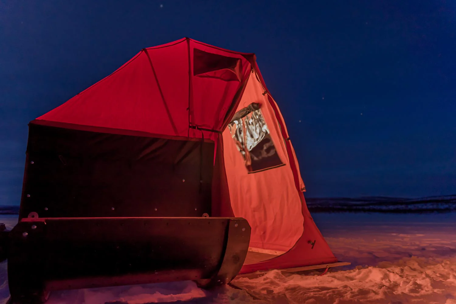 En mer komfortabel og lettvint m?te ? sl? opp din camp p? skal du lete lenge etter. PopUp Sled gj?r at du slipper arbeidet med ? sette opp camp, sammenlignet med lavvoer og gammer. I tillegg til kan du enkelt forflytte deg med sleden etter en sn?scooter.