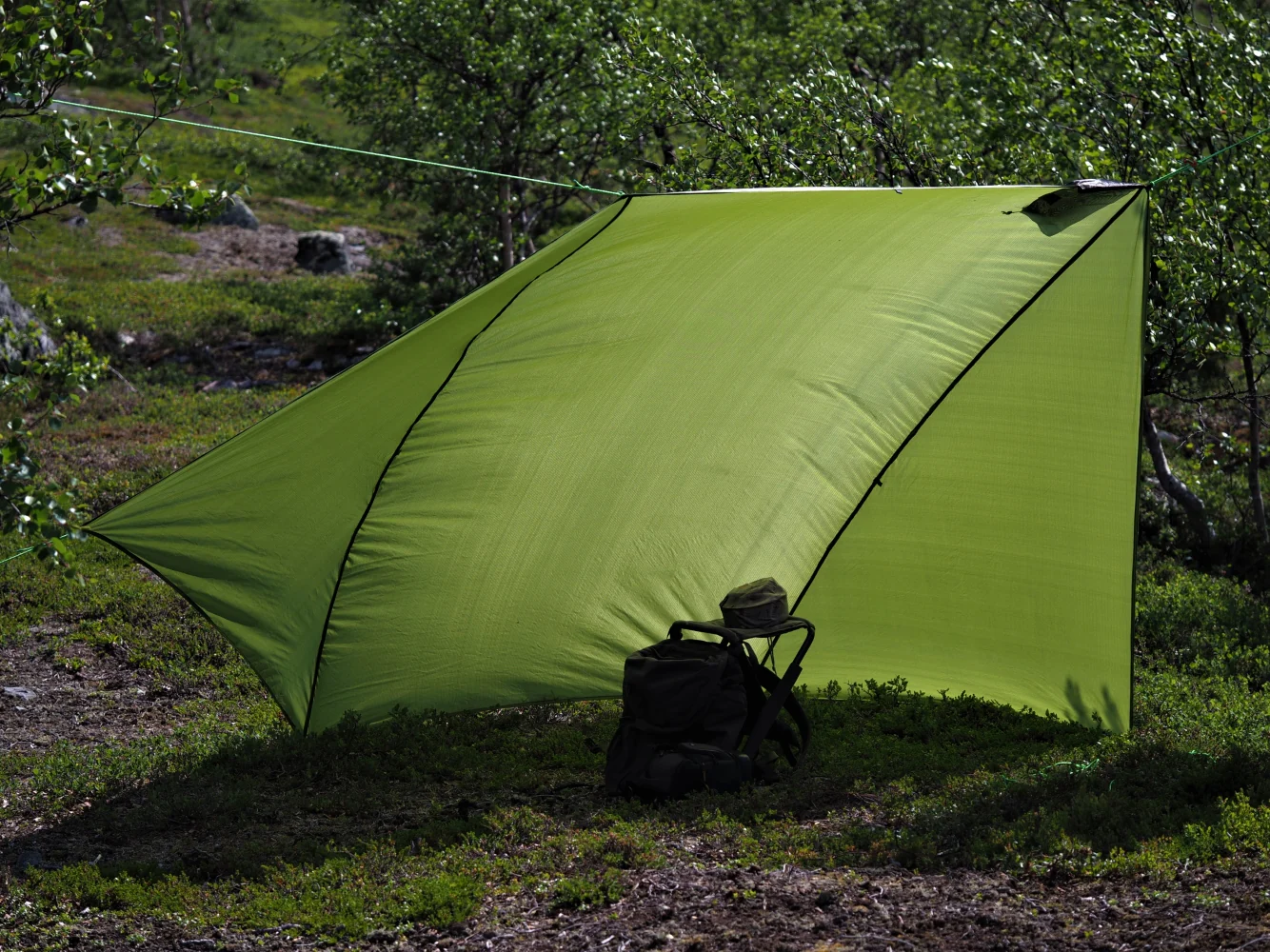 Dette er en tarp vi har designet for ogs? ? kunne bruke som en gapahuk, leveres med??transportpose, 4 stk. barduner p? 4m og 6 plugger. V?r oppmerksom p? at stenger? ikke f?lger med.?