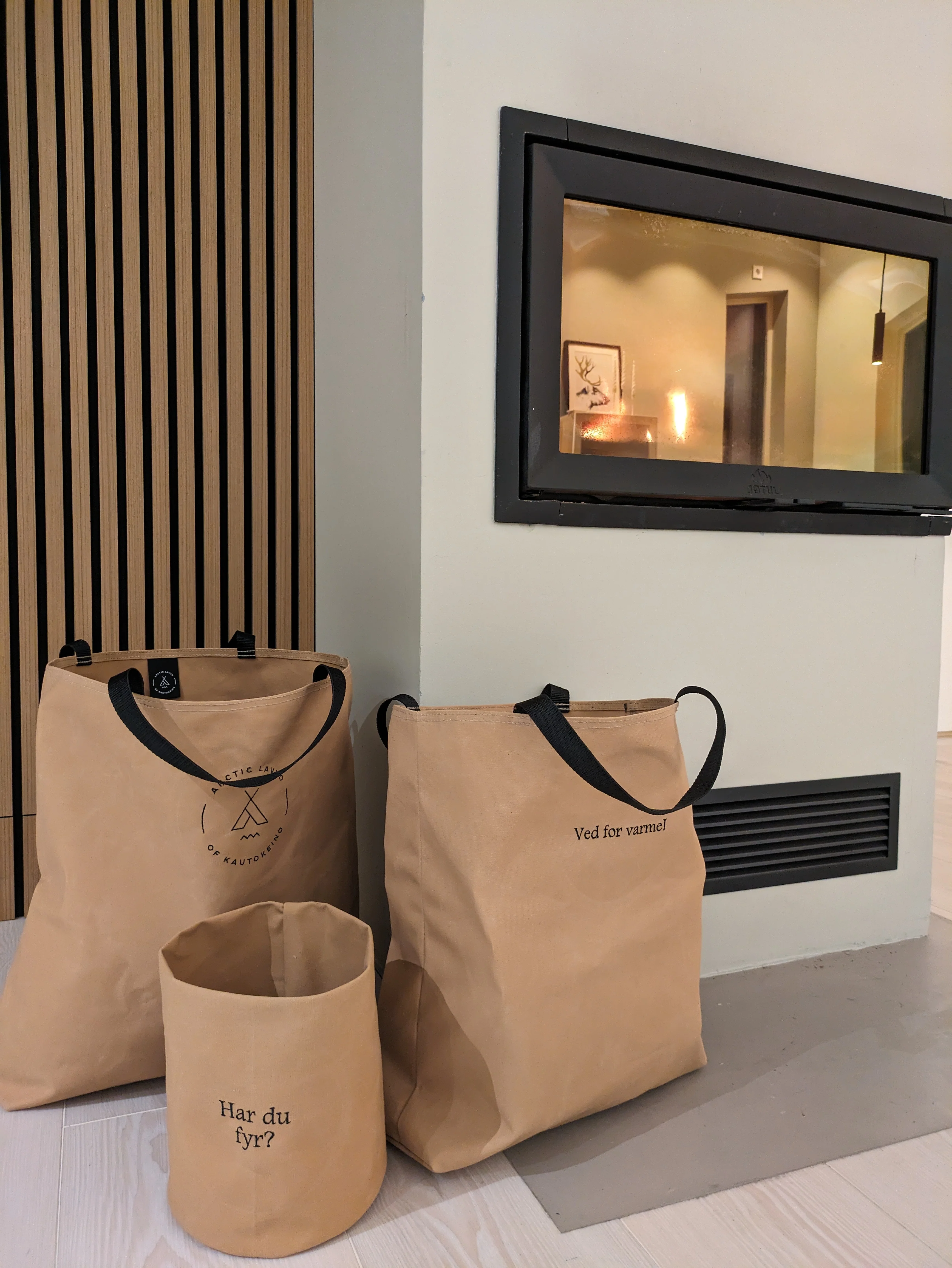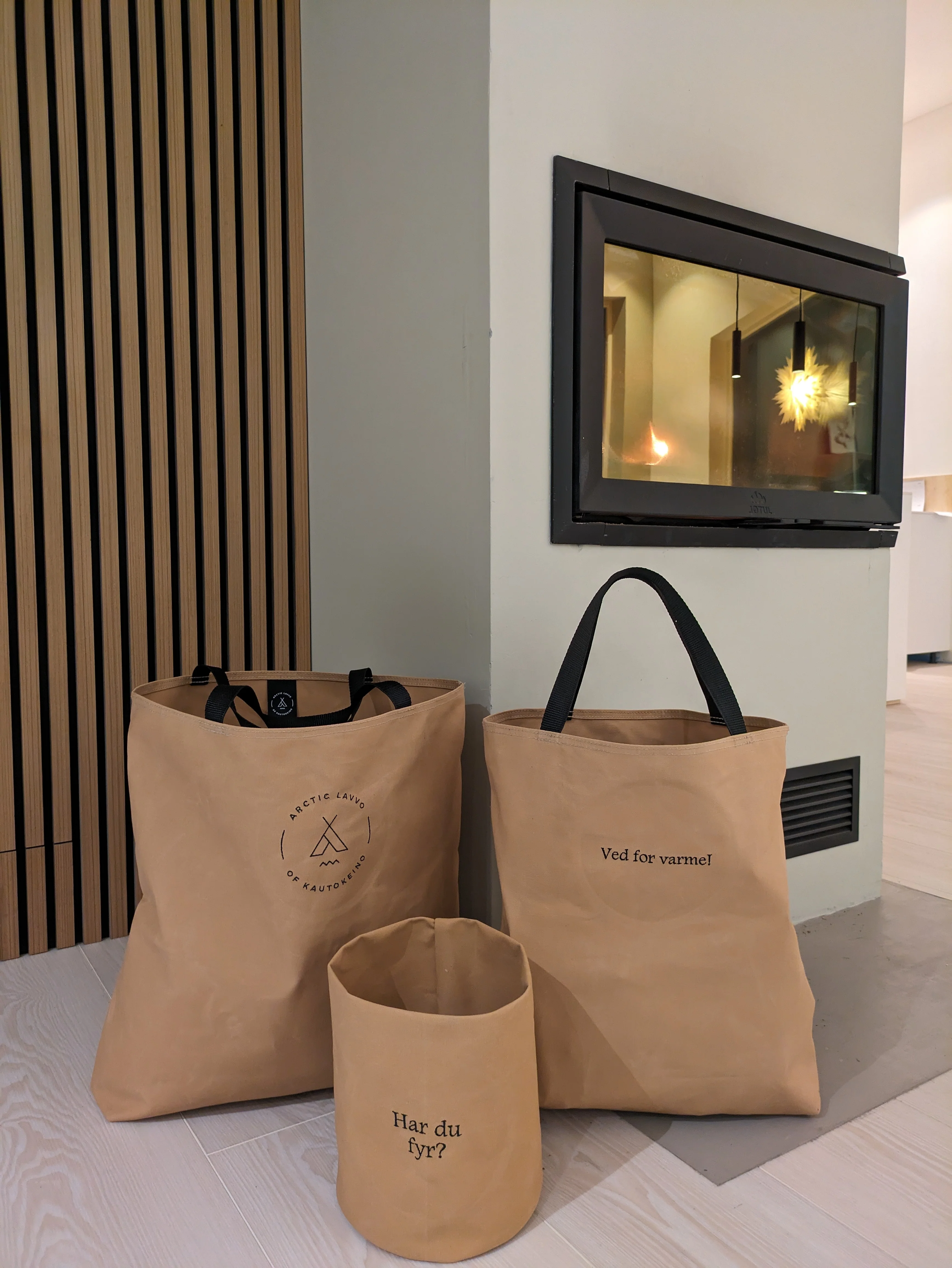 Vi lager vedsekker sydd av rester fra v?r lavvo-produksjon. T?ler mer vekt enn de fleste av oss klarer ? b?re. Klarer du ? ?delegge vedsekken f?r du ny gratis!